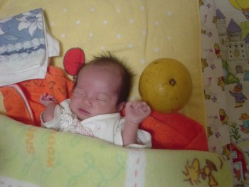 ●2004年5月18日(生後22日) あいちゃんと文旦 |