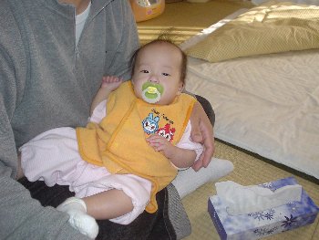 ●2004年11月2日(生後190日) おしゃぶりをつけてるけど、 あいちゃんはおしゃぶりが嫌いです |