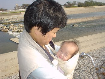 ●2004年11月18日(生後206日) 最近は、ベビースリング愛用中! |