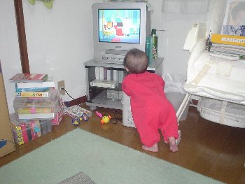 ●2004年12月11日(生後229日) こんな近くでテレビを見たら ダメだよ〜!! |