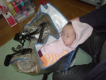 ●2004年12月23日(生後241日) 自転車前のせ椅子の中で寝てる・・・ |