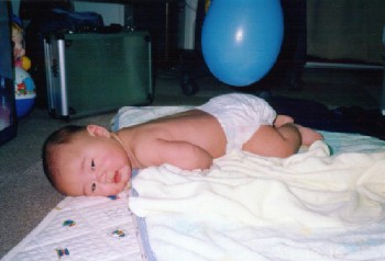 ●2001年12月13日(生後155日) で〜ん!!大胆なポーズです。 |