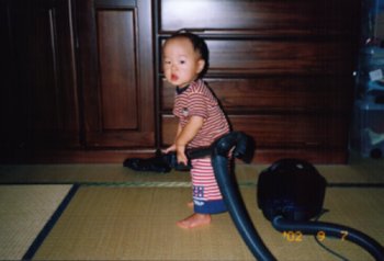 ●2002年9月7日(生後423日) 掃除機をかけるのが得意だよ!(^^ |