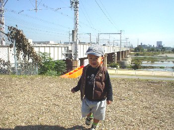 ●2003年10月25日(生後836日) 武庫川にかかるJRの橋。 貨物電車を見に、よく行く場所だよ。 |