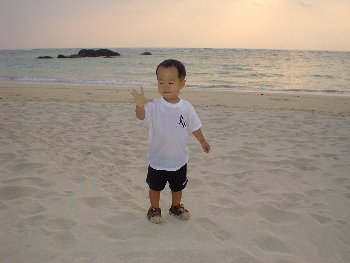 ●2003年10月27日(生後838日) 奄美大島の砂浜です |