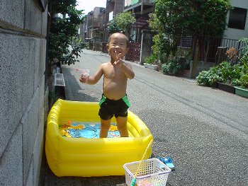 ビニールプール、楽しいな(^^